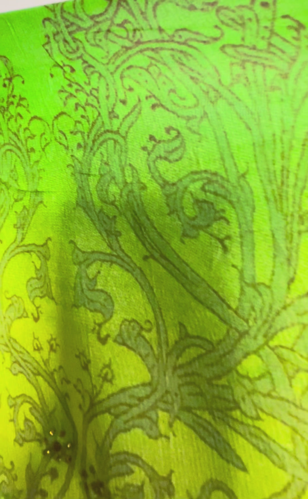 - Place the silk fabric with the area to be patched in a single layer on the white cotton.