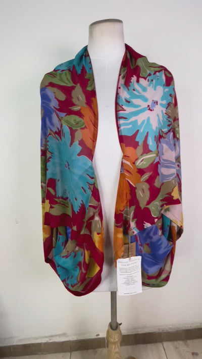 The Pure Silk Shrug is a best seller from sariKNOTsari. Available in unique colours and patterns, it makes a great accessory for covering your arms on chilly nights or adding a pop of colour to your wardrobe. This shrug is ideal for travel—it's light enough to fit into a purse and is easy to wash in a hotel sink. Silk naturally balances temperature, so you'll stay comfortable throughout the day. Also, it can be converted into a scarf! One size fits most, but please refer to the sizing tab for measurements. A great gift option!