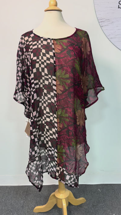 This final iteration of our tapered tunic top is designed for all body types, offering light, drapey coverage of the arms and shoulders. Side slits create a slightly tapered front, and the reversible design offers maximum versatility with a scoop neck on one side and a v-neck on the other - particularly flattering for apple-shaped figures.