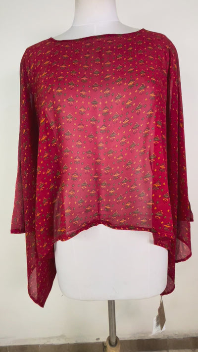 PRG7572 Sheer Wabi Sabi Pure Silk Kimono-Sleeved Top
