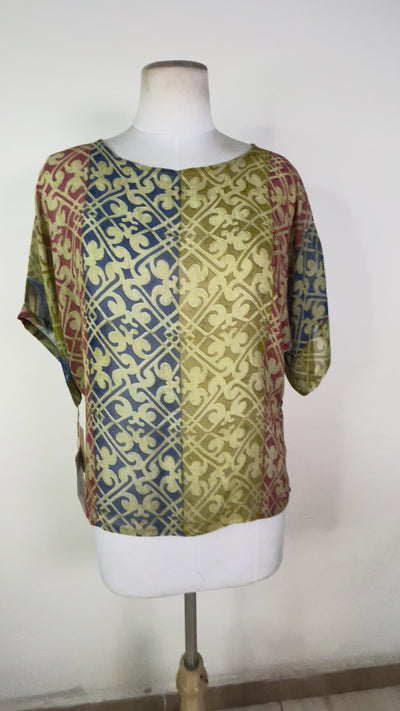 In order to extend the life of our gorgeous silks, we use small patches to camouflage the unavoidable fabric issues that arise from using upcycled fabrics. Most of our regularly-priced pieces will have some patching, but if there is more patching than we think is reasonable or if the patching is combined with another fabric issue, we will add the piece to our wabi sabi collection. Patching can be mild, moderate or significant. Please see the images and video attached to the wabi sabi piece that interests you for patches on that particular piece.