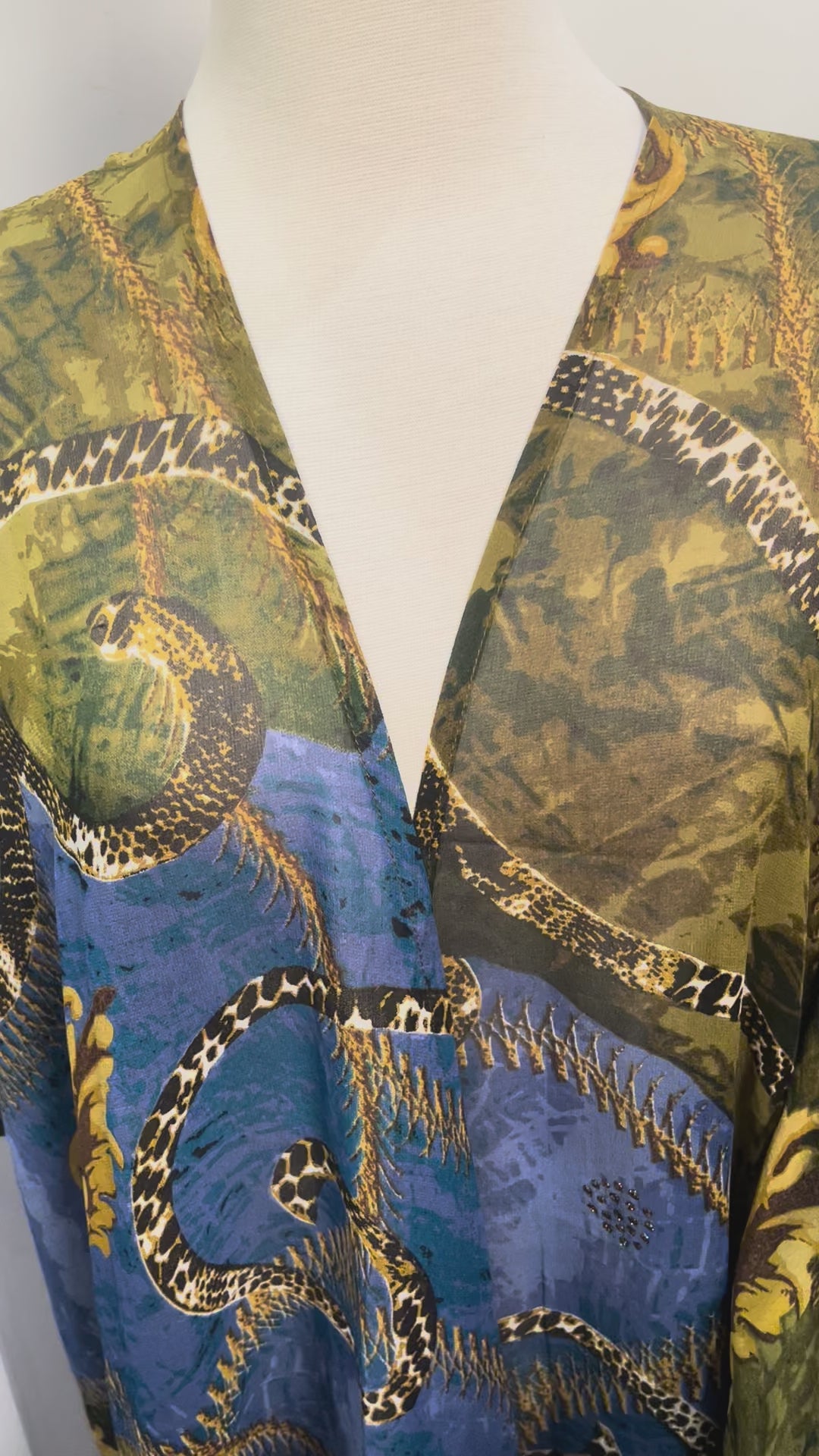 In order to extend the life of our gorgeous silks, we use small patches to camouflage the unavoidable fabric issues that arise from using upcycled fabrics. Most of our regularly-priced pieces will have some patching, but if there is more patching than we think is reasonable or if the patching is combined with another fabric issue, we will add the piece to our wabi sabi collection. Patching can be mild, moderate or significant. Please see the images and video attached to the wabi sabi piece that interests you for patches on that particular piece.