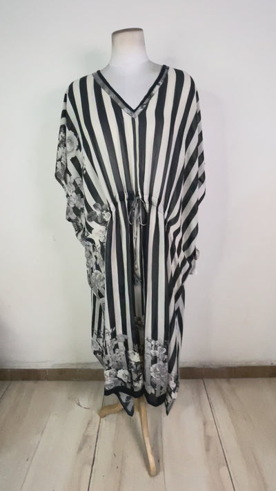 It's finally ready! We workshopped this style with our customers for months to create the perfect maxi kaftan style! It's long, it's generously-cut and it gently skims your body with the feather-light softness of silk. The drawstring at the front allows you to add definition, if you want it. We picture this kaftan at the beach, at a resort, or lounging with you at the cottage.