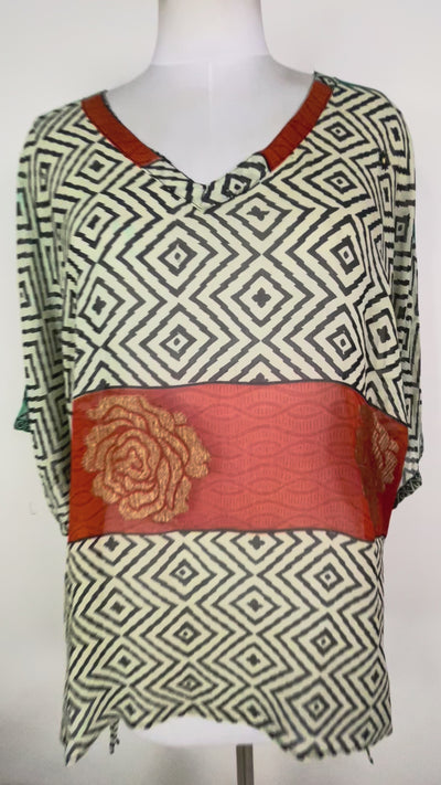 In Eastern philosophy, an Avatar is an incarnation that teaches how to evolve virtues of the past into the present. The Pure Upcycled Silk Avatar Collection is made from vintage pure silk saris, chosen and worn by women in the past to celebrate their lives. If you look very closely, you will see that the silks in this collection show some of the character of their previous incarnations through the appliqués that have been lovingly applied to bring new life to the fabric. This piece is a reminder that we are part of a collective journey to which we all add a little something.