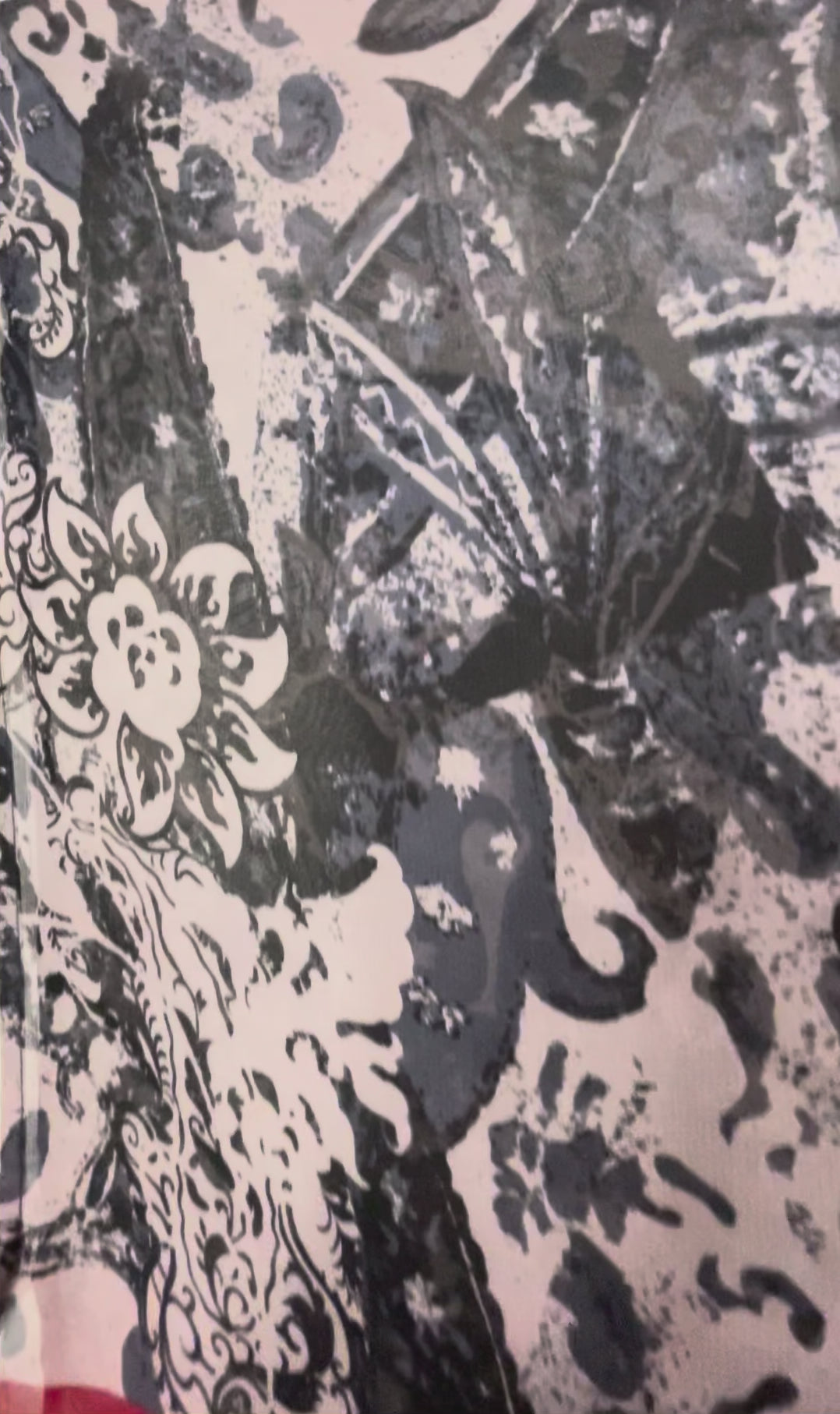 If you look very closely, you will see that the silks in this collection show some of the character of their previous incarnations through the appliqués that have been lovingly applied to bring new life to the fabric. This piece is a reminder that we are part of a collective journey to which we all add a little something.