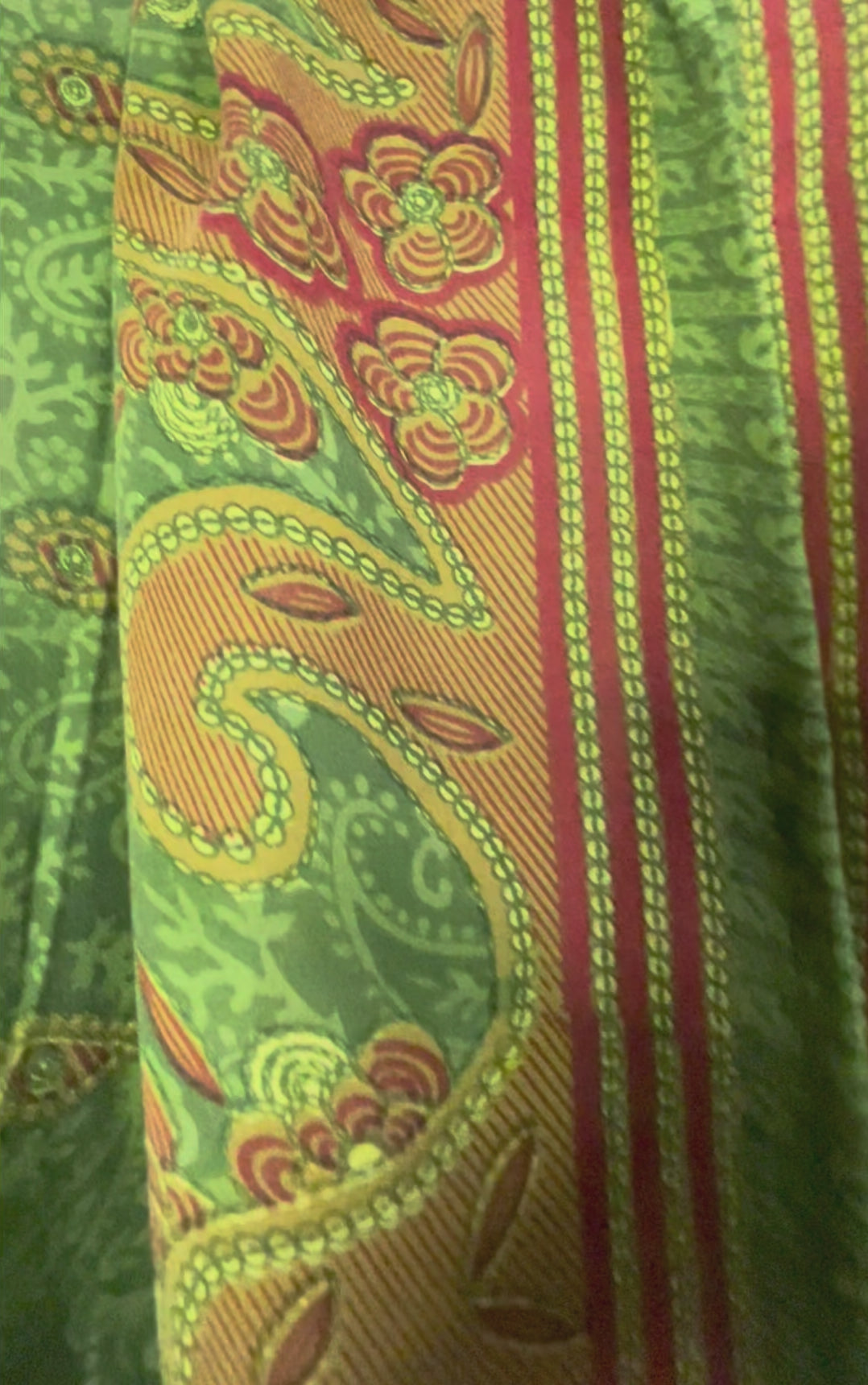 In Eastern philosophy, an Avatar is an incarnation that teaches how to evolve virtues of the past into the present. The Pure Upcycled Silk Avatar Collection is made from vintage pure silk saris, chosen and worn by women in the past to celebrate their lives.If you look very closely, you will see that the silks in this collection show some of the character of their previous incarnations through the appliqués that have been lovingly applied to bring new life to the fabric. This piece is a reminder that we are part of a collective journey to which we all add a little something.