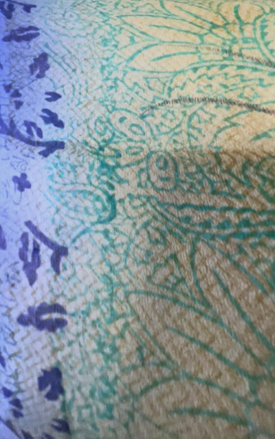 In Eastern philosophy, an Avatar is an incarnation that teaches how to evolve virtues of the past into the present. The Pure Upcycled Silk Avatar Collection is made from vintage pure silk saris, chosen and worn by women in the past to celebrate their lives. If you look very closely, you will see that the silks in this collection show some of the character of their previous incarnations through the appliqués that have been lovingly applied to bring new life to the fabric. This piece is a reminder that we are part of a collective journey to which we all add a little something.