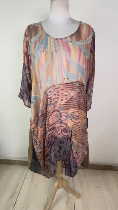 PRG7990 Sheer Wabi Sabi Sculptural Silk Long Tunic Dress