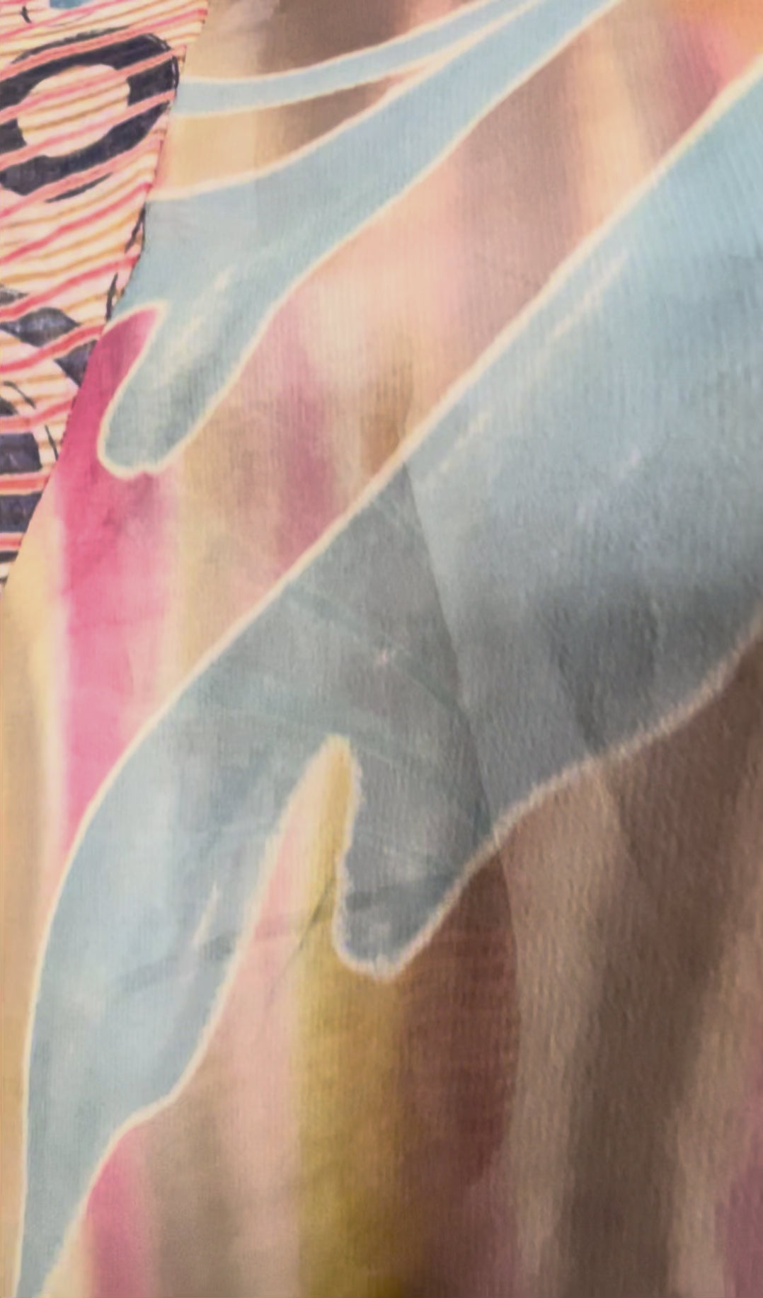 In order to extend the life of our gorgeous silks, we use small patches to camouflage the unavoidable fabric issues that arise from using upcycled fabrics. Most of our regularly-priced pieces will have some patching, but if there is more patching than we think is reasonable or if the patching is combined with another fabric issue, we will add the piece to our wabi sabi collection. Patching can be mild, moderate or significant. Please see the images and video attached to the wabi sabi piece that interests you for patches on that particular piece.