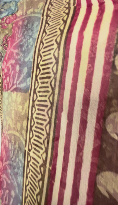 In Eastern philosophy, an Avatar is an incarnation that teaches how to evolve virtues of the past into the present. The Pure Upcycled Silk Avatar Collection is made from vintage pure silk saris, chosen and worn by women in the past to celebrate their lives.If you look very closely, you will see that the silks in this collection show some of the character of their previous incarnations through the appliqués that have been lovingly applied to bring new life to the fabric. This piece is a reminder that we are part of a collective journey to which we all add a little something.