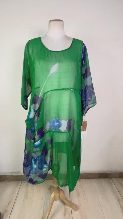 PRG7994 Sheer Wabi Sabi Sculptural Silk Long Tunic Dress