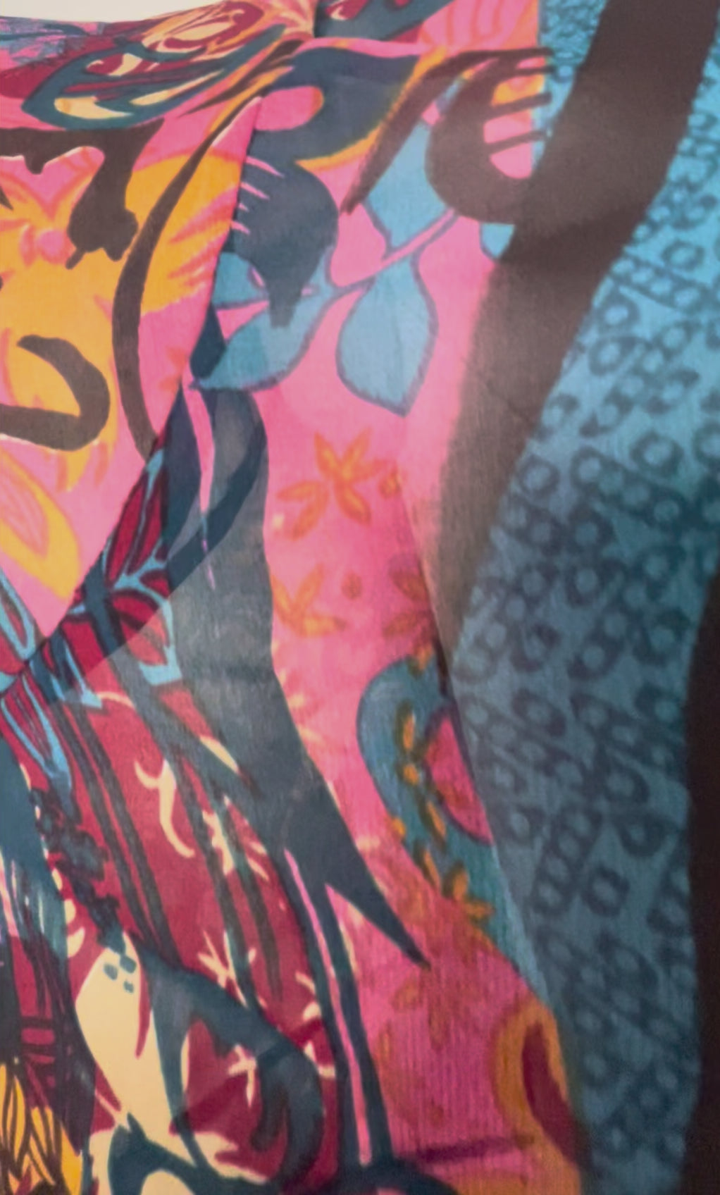 In Eastern philosophy, an Avatar is an incarnation that teaches how to evolve virtues of the past into the present. The Pure Upcycled Silk Avatar Collection is made from vintage pure silk saris, chosen and worn by women in the past to celebrate their lives.If you look very closely, you will see that the silks in this collection show some of the character of their previous incarnations through the appliqués that have been lovingly applied to bring new life to the fabric. This piece is a reminder that we are part of a collective journey to which we all add a little something.