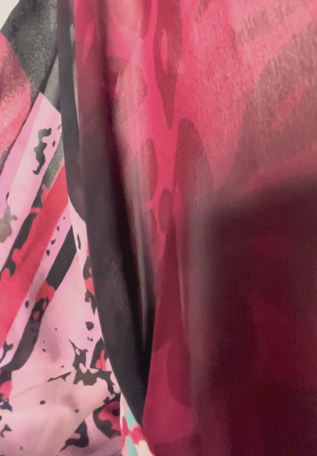 In order to extend the life of our gorgeous silks, we use small patches to camouflage the unavoidable fabric issues that arise from using upcycled fabrics. Most of our regularly-priced pieces will have some patching, but if there is more patching than we think is reasonable or if the patching is combined with another fabric issue, we will add the piece to our wabi sabi collection. Patching can be mild, moderate or significant. Please see the images and video attached to the wabi sabi piece that interests you for patches on that particular piece.