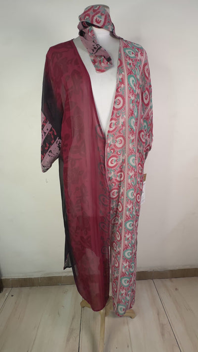 PRG8057 Sheer Wabi Sabi Pure Silk Kimono Sleeved Duster with Belt