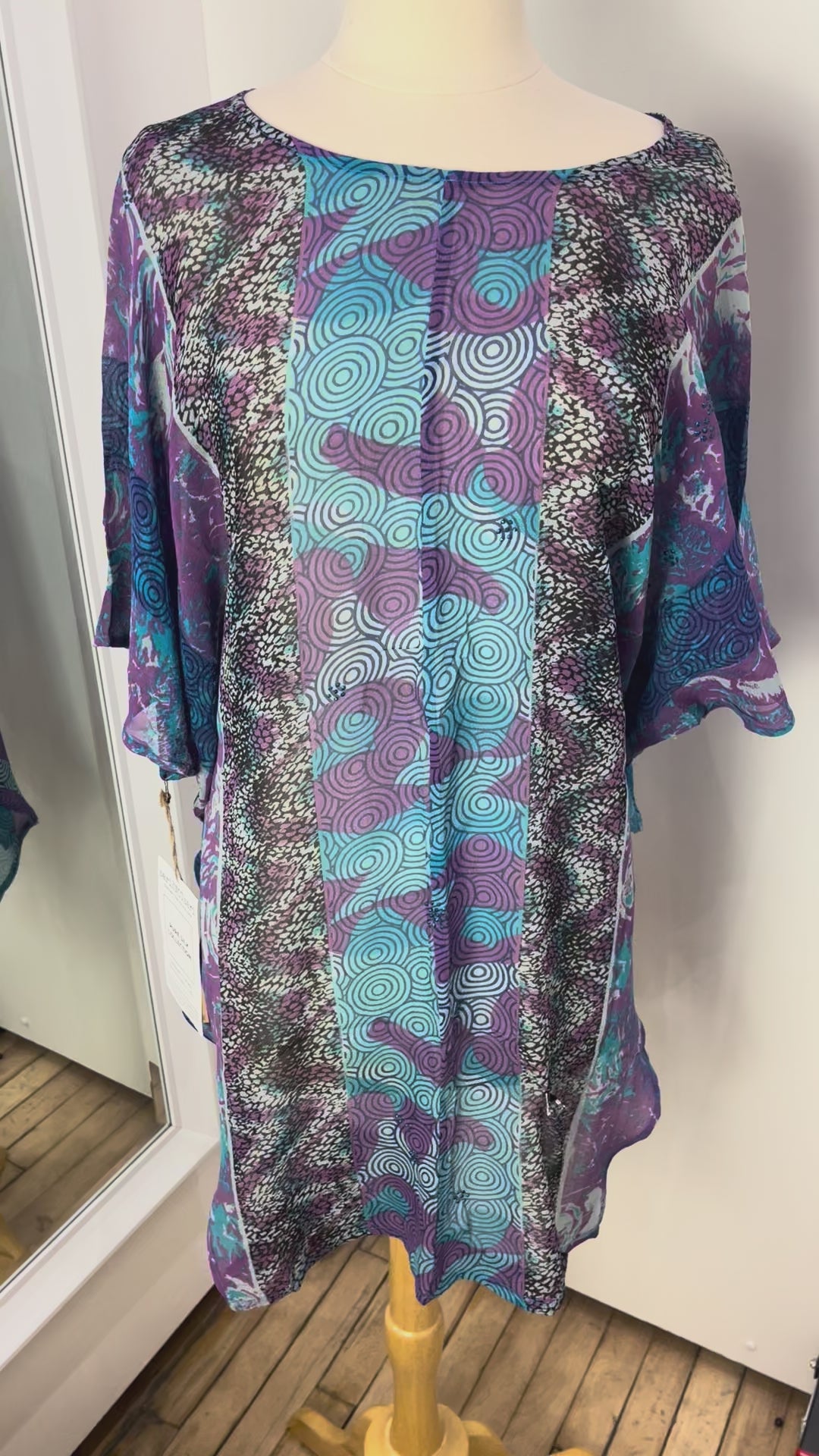 This final iteration of our tapered tunic top is designed for all body types, offering light, drapey coverage of the arms and shoulders. Side slits create a slightly tapered front, and the reversible design offers maximum versatility with a scoop neck on one side and a v-neck on the other - particularly flattering for apple-shaped figures.