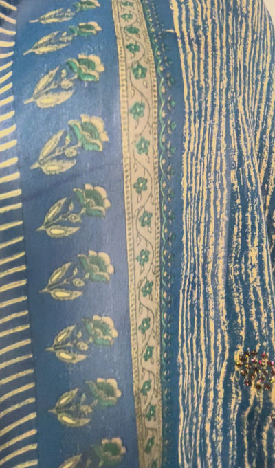 In Eastern philosophy, an Avatar is an incarnation that teaches how to evolve virtues of the past into the present. The Pure Upcycled Silk Avatar Collection is made from vintage pure silk saris, chosen and worn by women in the past to celebrate their lives.If you look very closely, you will see that the silks in this collection show some of the character of their previous incarnations through the appliqués that have been lovingly applied to bring new life to the fabric. This piece is a reminder that we are part of a collective journey to which we all add a little something.