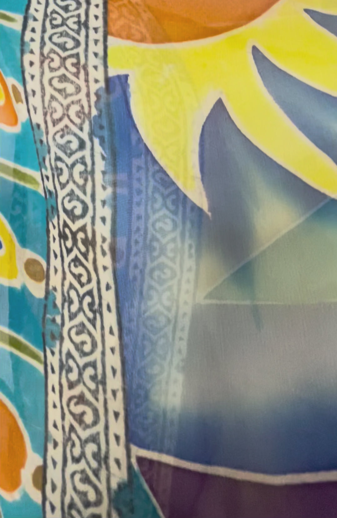 In Eastern philosophy, an Avatar is an incarnation that teaches how to evolve virtues of the past into the present. The Pure Upcycled Silk Avatar Collection is made from vintage pure silk saris, chosen and worn by women in the past to celebrate their lives. If you look very closely, you will see that the silks in this collection show some of the character of their previous incarnations through the appliqués that have been lovingly applied to bring new life to the fabric. This piece is a reminder that we are part of a collective journey to which we all add a little something.