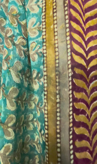 In Eastern philosophy, an Avatar is an incarnation that teaches how to evolve virtues of the past into the present. The Pure Upcycled Silk Avatar Collection is made from vintage pure silk saris, chosen and worn by women in the past to celebrate their lives.If you look very closely, you will see that the silks in this collection show some of the character of their previous incarnations through the appliqués that have been lovingly applied to bring new life to the fabric. This piece is a reminder that we are part of a collective journey to which we all add a little something.