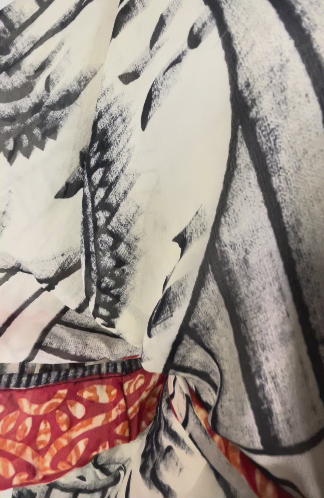 In Eastern philosophy, an Avatar is an incarnation that teaches how to evolve virtues of the past into the present. The Pure Upcycled Silk Avatar Collection is made from vintage pure silk saris, chosen and worn by women in the past to celebrate their lives. If you look very closely, you will see that the silks in this collection show some of the character of their previous incarnations through the appliqués that have been lovingly applied to bring new life to the fabric. This piece is a reminder that we are part of a collective journey to which we all add a little something.