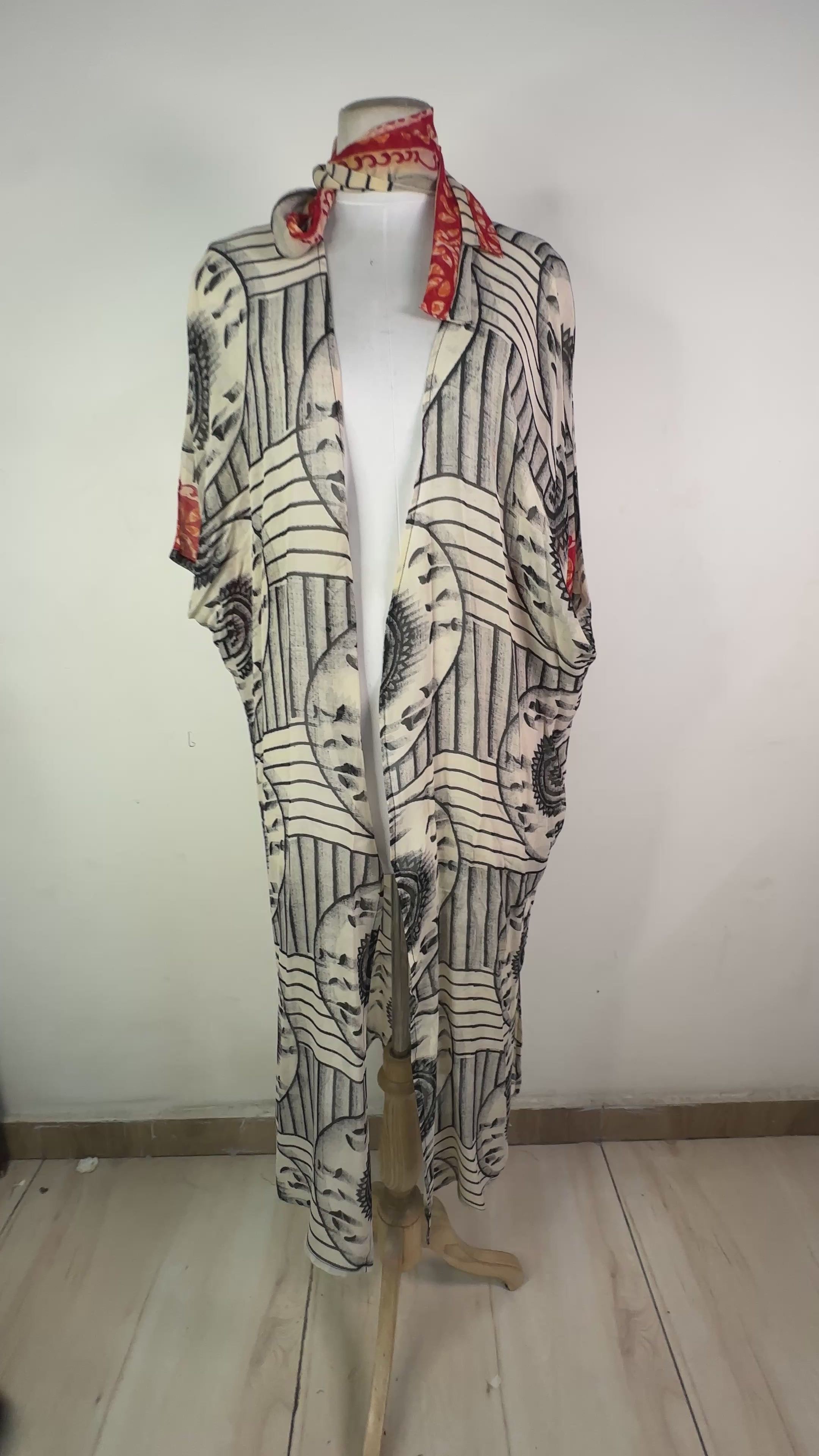 This ethereal, long, open-front duster with detachable belt offers endless styling options. Layer it over jeans, dresses, or swimwear; try it forwards or backwards, as a dress or as a jacket. The sleeves end at the elbow for a cropped wrap jacket look when tied in the front. It's the perfect piece of slow fashion for women 5'4'' and taller; if your frame is shorter, simply add knots to the hem for a personalized fit. Its versatile design also allows you to wear the duster forwards or backwards, or even upside down!