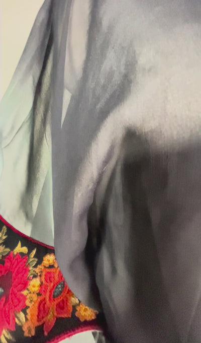 In Eastern philosophy, an Avatar is an incarnation that teaches how to evolve virtues of the past into the present. The Pure Upcycled Silk Avatar Collection is made from vintage pure silk saris, chosen and worn by women in the past to celebrate their lives.If you look very closely, you will see that the silks in this collection show some of the character of their previous incarnations through the appliqués that have been lovingly applied to bring new life to the fabric. This piece is a reminder that we are part of a collective journey to which we all add a little something.