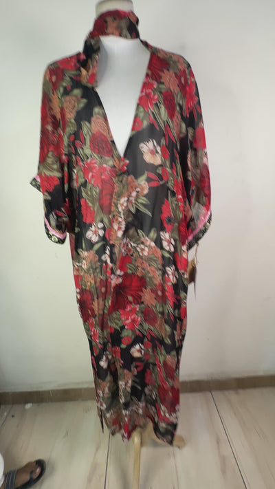 PRG8212 Sheer Wabi Sabi Pure Silk Kimono Sleeved Duster with Belt
