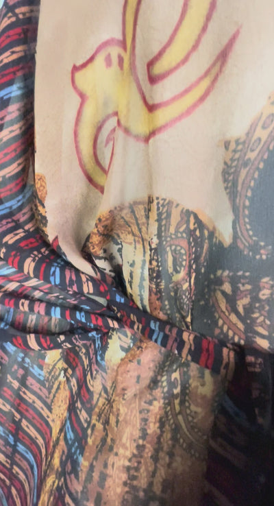 In Eastern philosophy, an Avatar is an incarnation that teaches how to evolve virtues of the past into the present. The Pure Upcycled Silk Avatar Collection is made from vintage pure silk saris, chosen and worn by women in the past to celebrate their lives.If you look very closely, you will see that the silks in this collection show some of the character of their previous incarnations through the appliqués that have been lovingly applied to bring new life to the fabric. This piece is a reminder that we are part of a collective journey to which we all add a little something.