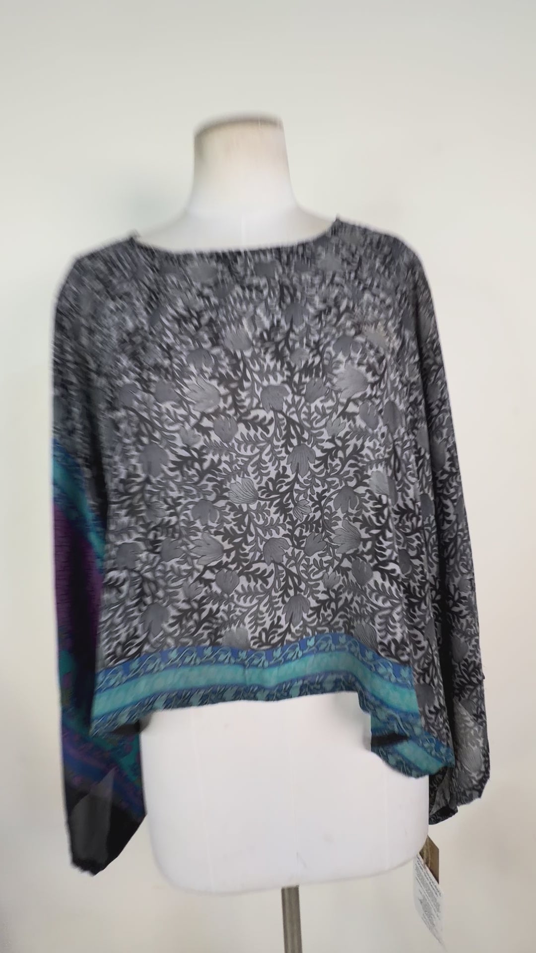 This timeless top is defined by tasteful minimalist lines. Its classic design provides seasonless versatility, from a top to a scarf. Its square kimono sleeves flatter all body types. Crafted from recycled and temperature-regulating silk, it provides optimal comfort in both hot and cold conditions. It is suitable for all sizes, from 2-18. Refer to the sizing tab for precise measurements.