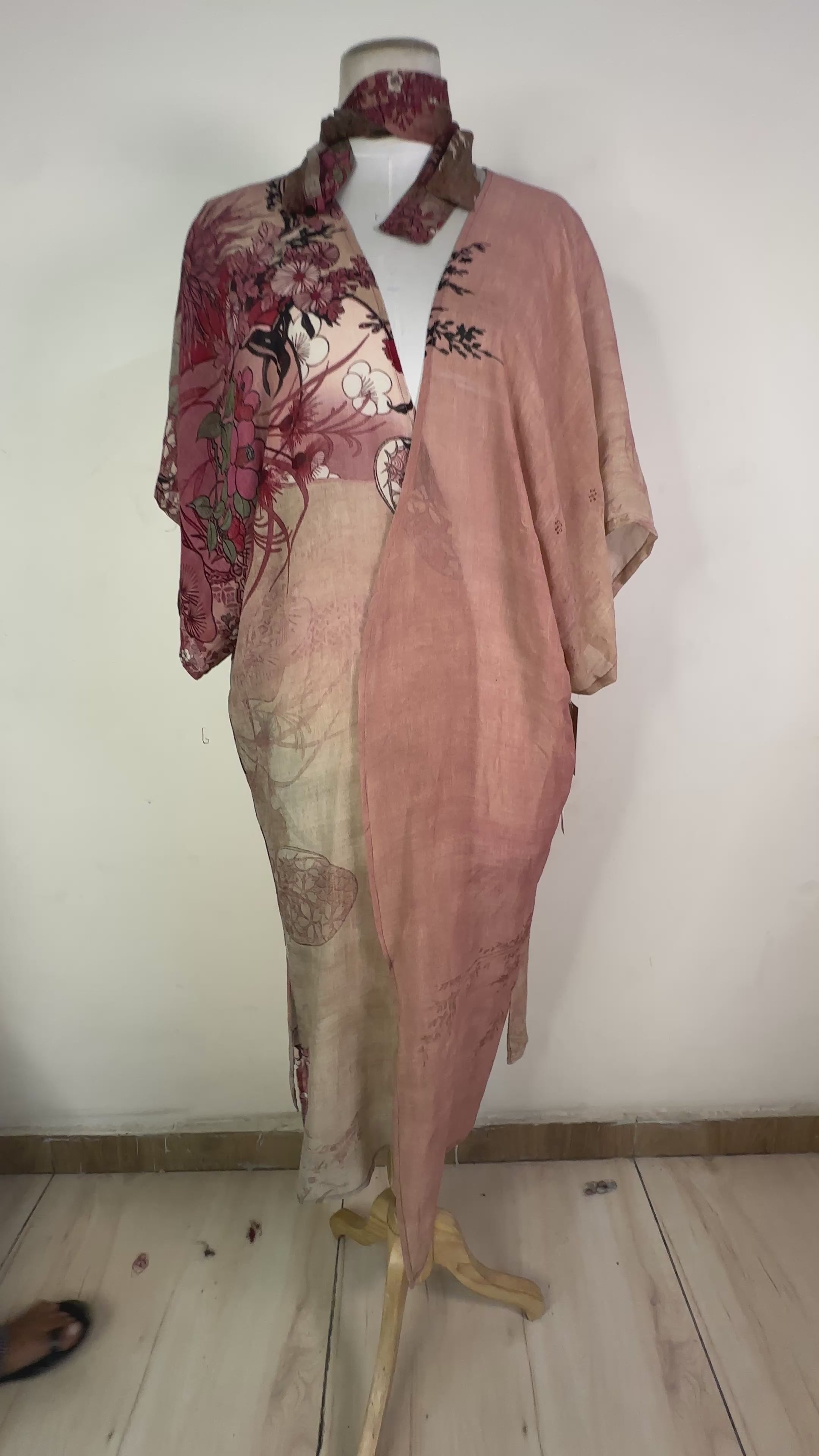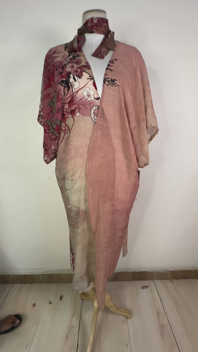 PRG8261 Sheer Wabi Sabi Pure Silk Kimono Sleeved Duster with Belt