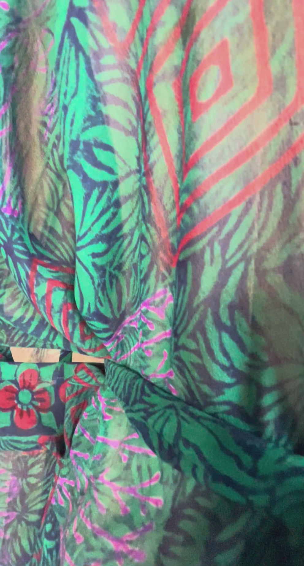 In Eastern philosophy, an Avatar is an incarnation that teaches how to evolve virtues of the past into the present. The Pure Upcycled Silk Avatar Collection is made from vintage pure silk saris, chosen and worn by women in the past to celebrate their lives.If you look very closely, you will see that the silks in this collection show some of the character of their previous incarnations through the appliqués that have been lovingly applied to bring new life to the fabric. This piece is a reminder that we are part of a collective journey to which we all add a little something.