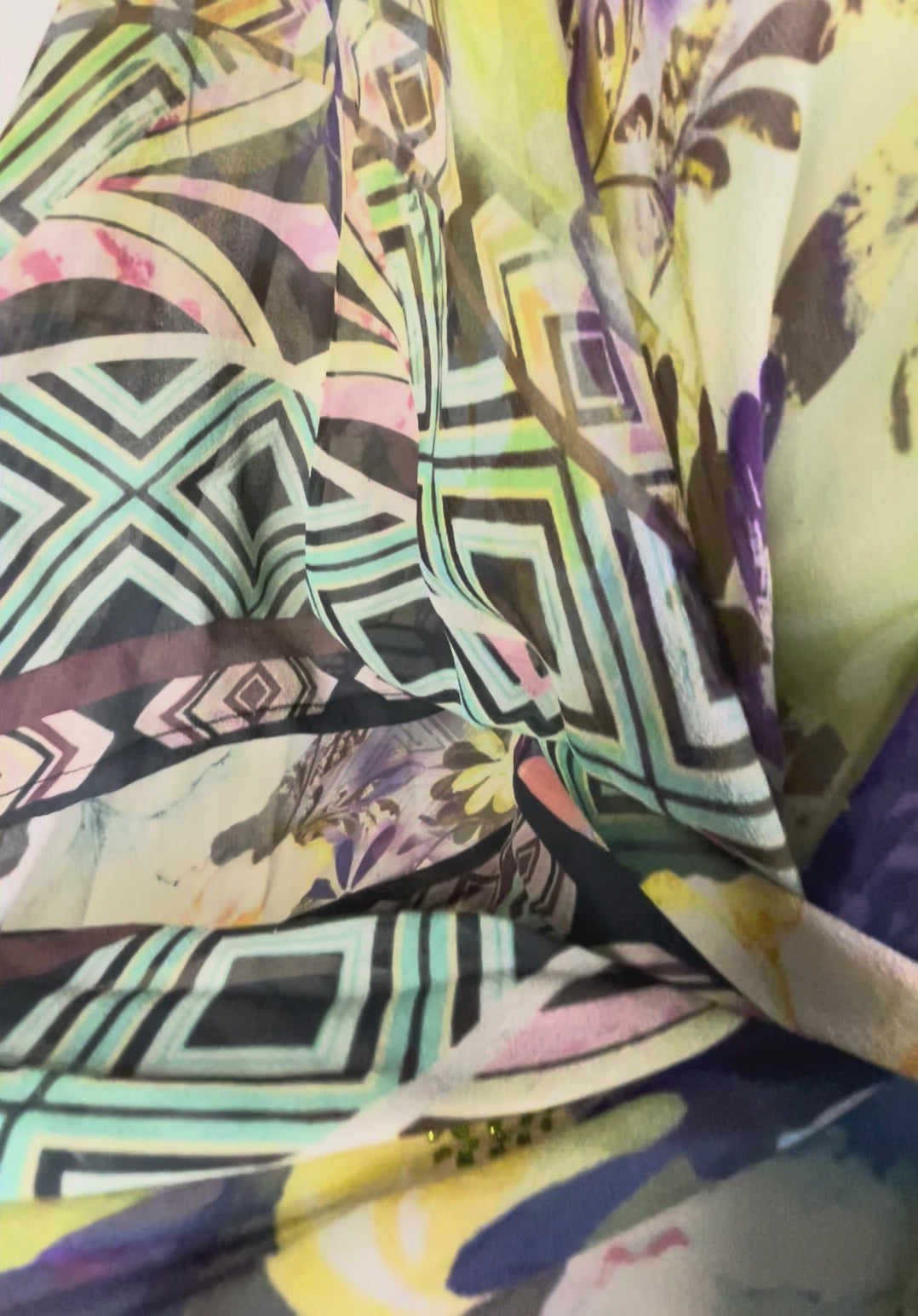 In Eastern philosophy, an Avatar is an incarnation that teaches how to evolve virtues of the past into the present. The Pure Upcycled Silk Avatar Collection is made from vintage pure silk saris, chosen and worn by women in the past to celebrate their lives. If you look very closely, you will see that the silks in this collection show some of the character of their previous incarnations through the appliqués that have been lovingly applied to bring new life to the fabric. This piece is a reminder that we are part of a collective journey to which we all add a little something.