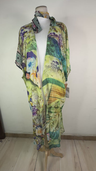 PRG8270 Sheer Wabi Sabi Pure Silk Kimono Sleeved Duster with Belt