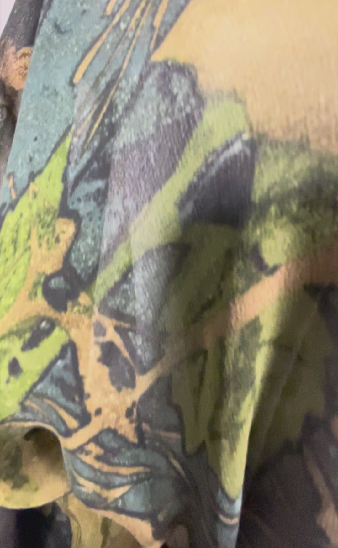 If you look very closely, you will see that the silks in this collection show some of the character of their previous incarnations through the appliqués that have been lovingly applied to bring new life to the fabric. This piece is a reminder that we are part of a collective journey to which we all add a little something.