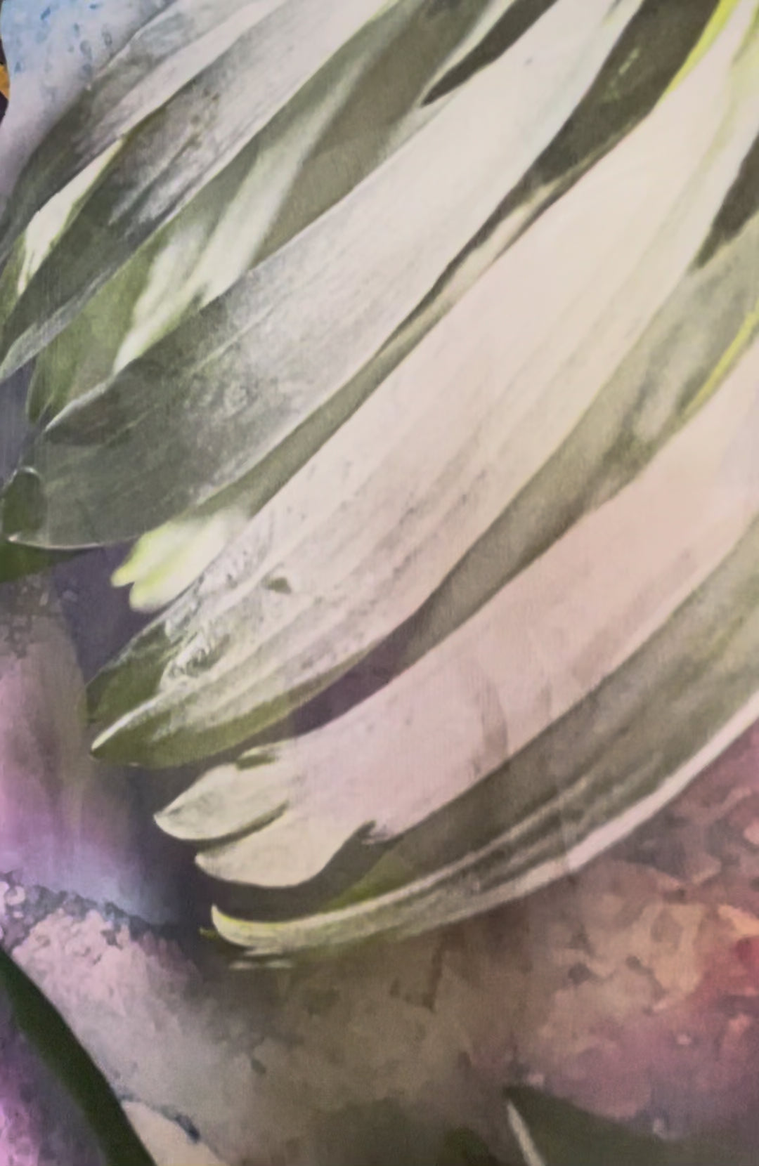 If you look very closely, you will see that the silks in this collection show some of the character of their previous incarnations through the appliqués that have been lovingly applied to bring new life to the fabric. This piece is a reminder that we are part of a collective journey to which we all add a little something.