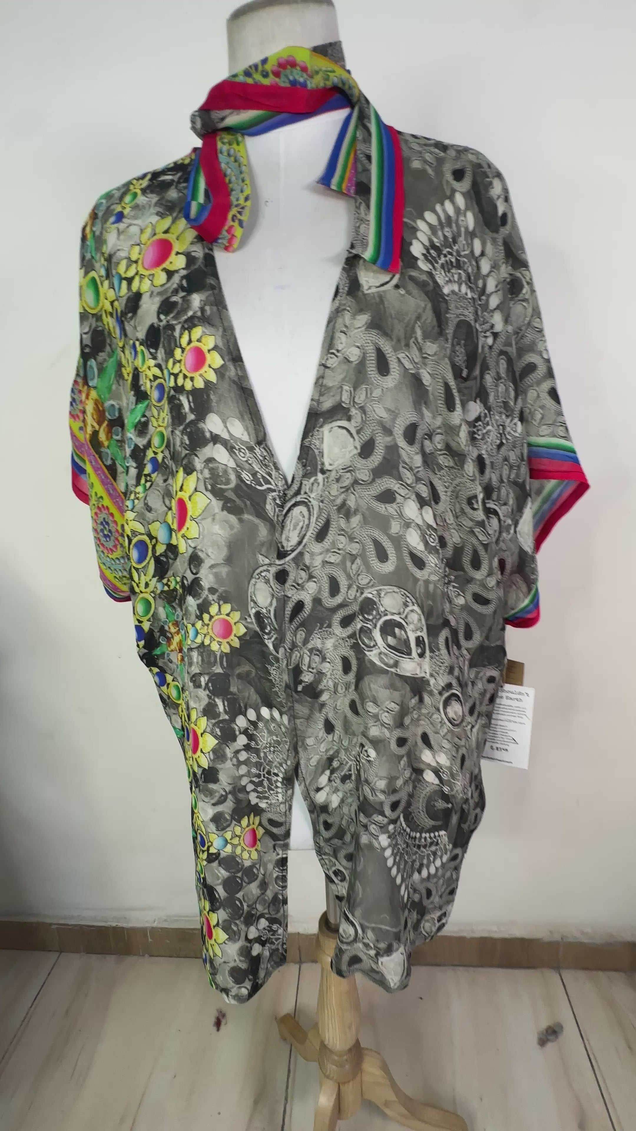 PRG8345 Sheer Wabi Sabi Pure Silk Kimono-Sleeved Jacket with Belt
