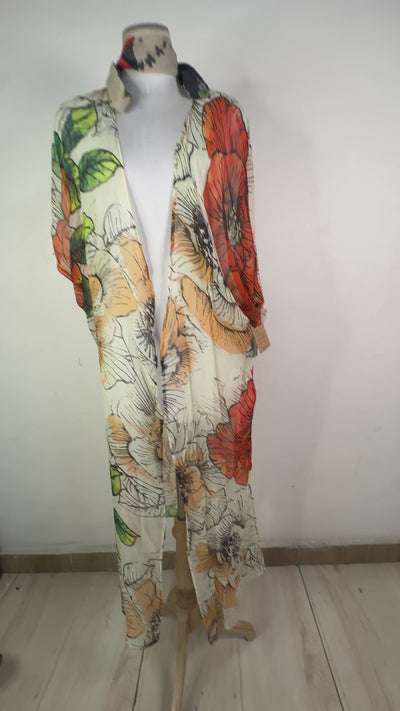 PRG8349 Sheer Wabi Sabi Pure Silk Kimono Sleeved Duster with Belt