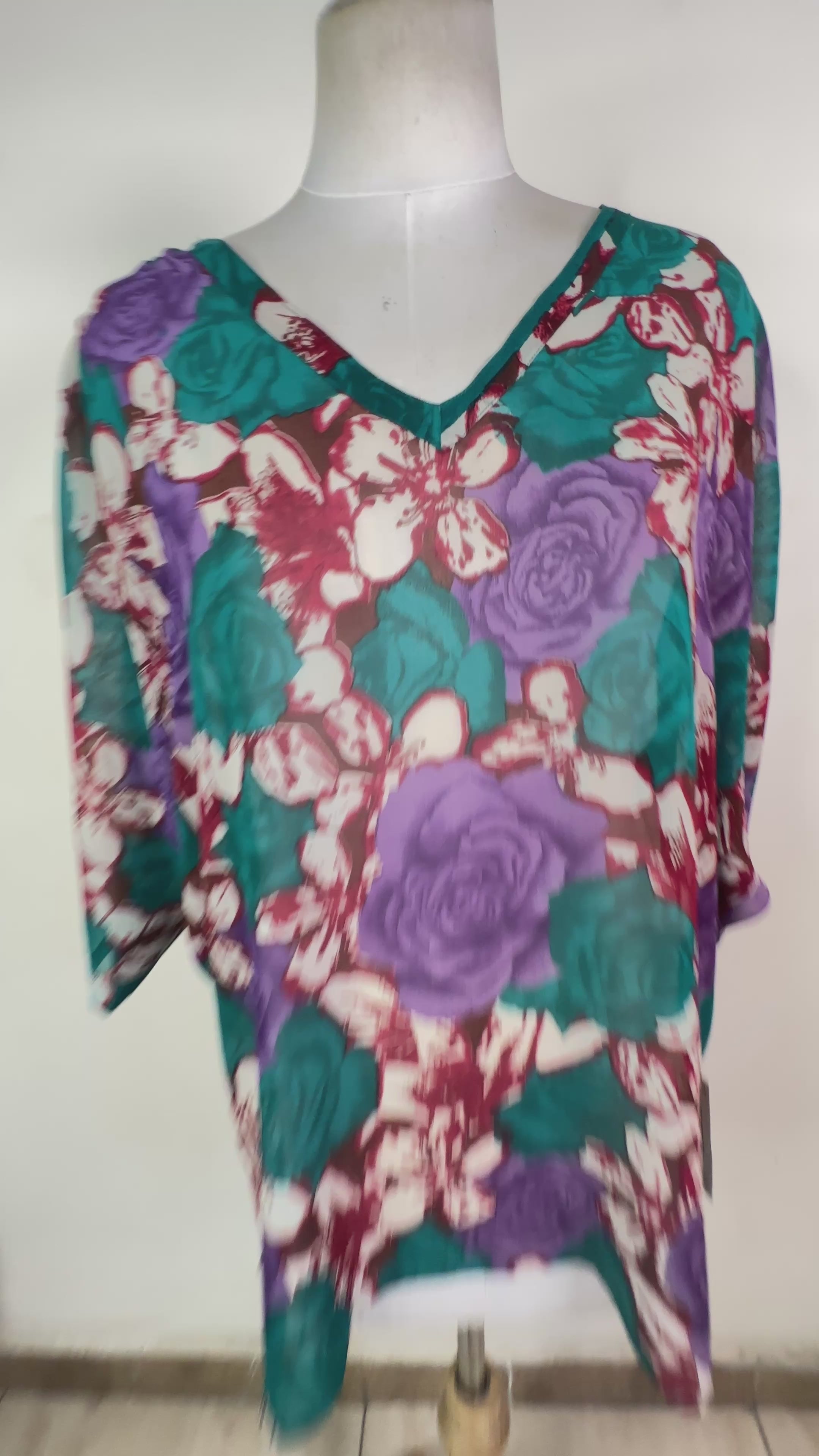 This tunic is long enough to provide full coverage, while adjustability is provided by side ties. This style accommodates all body types with a v-neckline on one side and a crew neckline on the other, so whichever side is worn to the front, you are sure to look great. Generously-cut so it fits sizes 2-18, but refer to the sizing tab for the exact measurements.