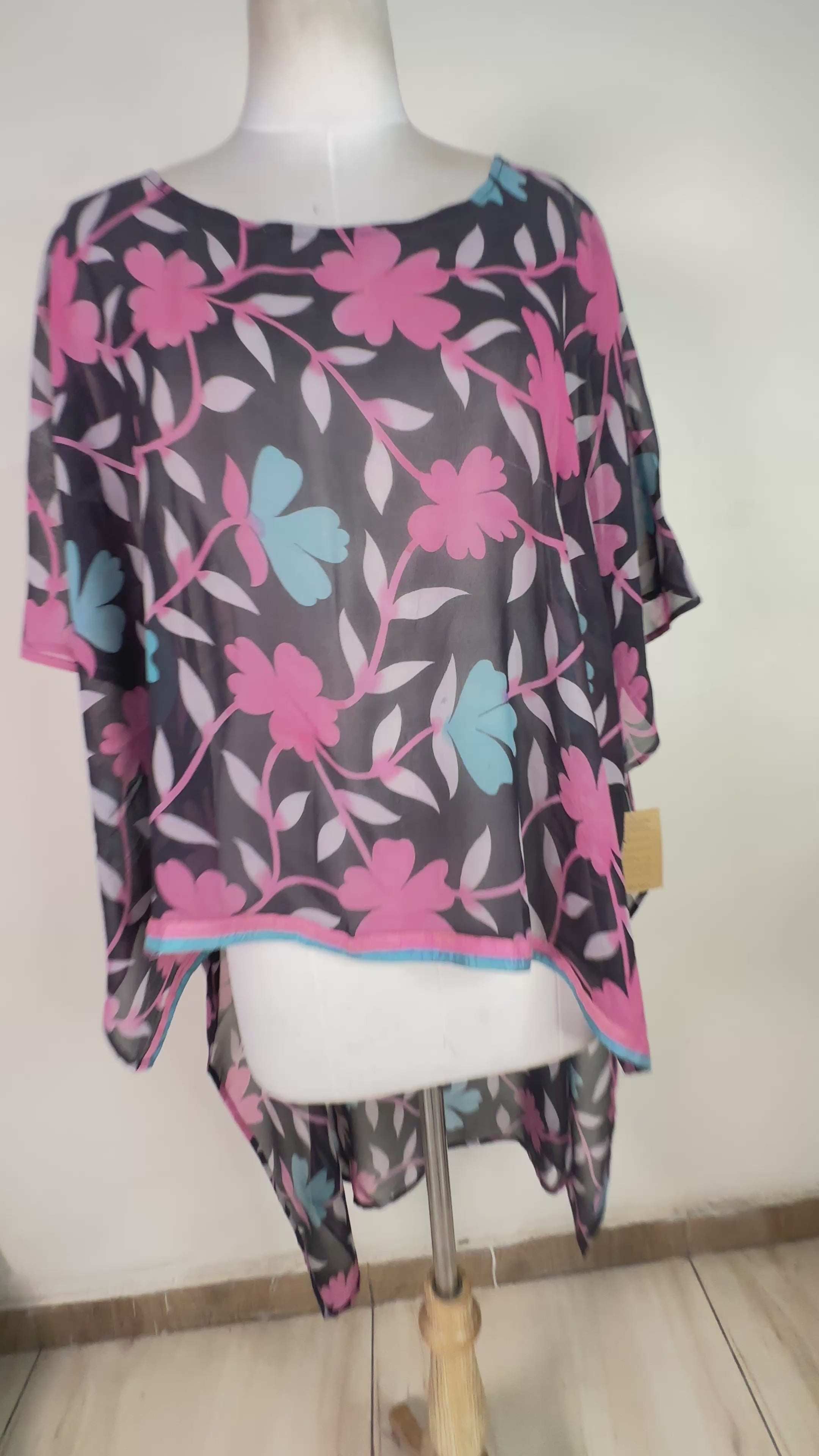 This top provides effortless elegance. Ideal for dressing up or down, it is generously cut for comfortable wear. It's like a duster that you don't need to wear a top underneath, making it your go-to style. As comfortable as PJs, it fits sizes 2 to 3X. This top is an essential in your wardrobe!