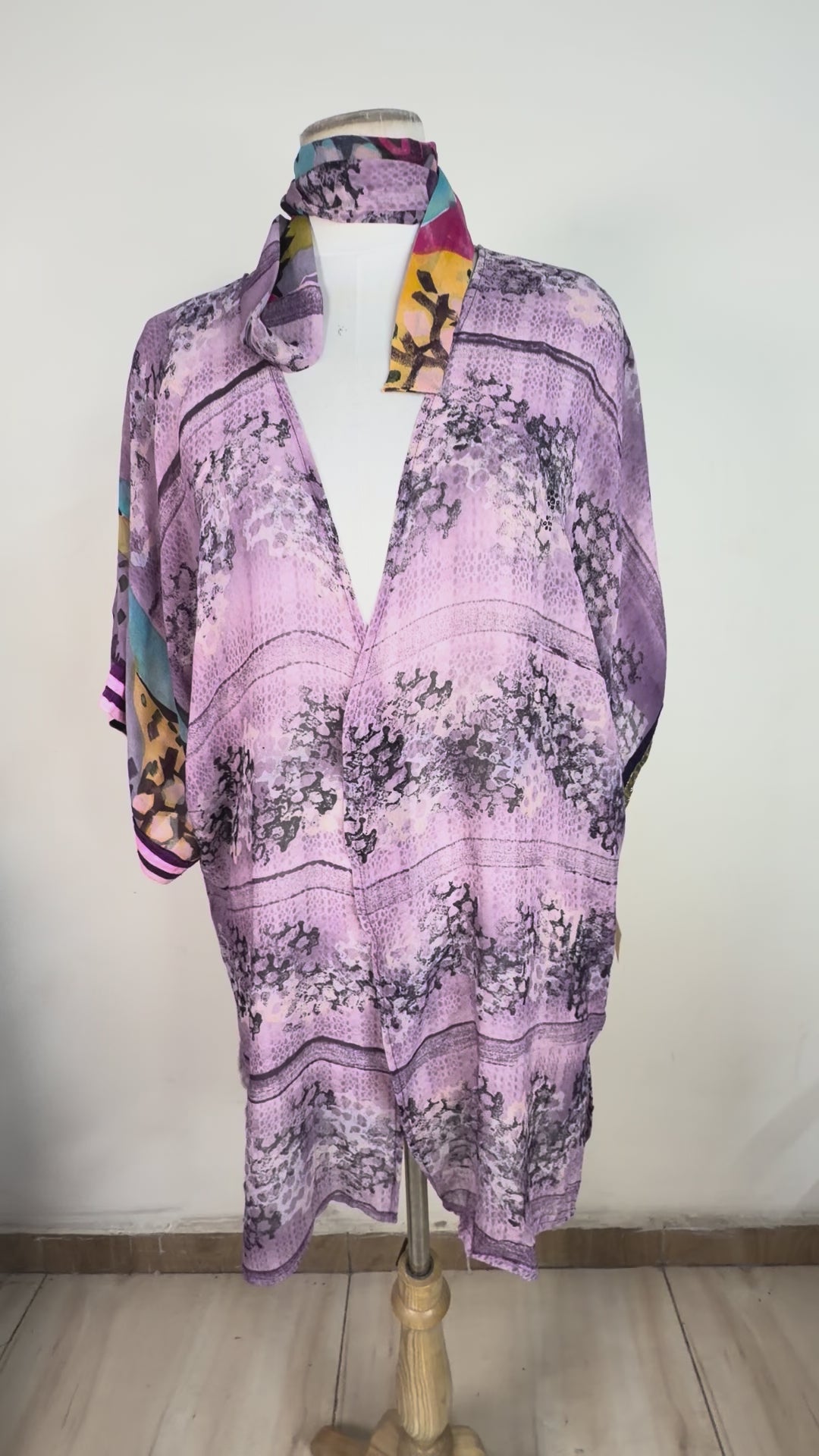 PREVIEW PRG8516 Sheer Wabi Sabi Pure Silk Kimono-Sleeved Jacket with Belt