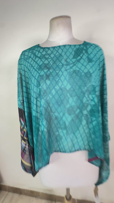 This timeless top is defined by tasteful minimalist lines. Its classic design provides seasonless versatility, from a top to a scarf. Its square kimono sleeves flatter all body types. Crafted from recycled and temperature-regulating silk, it provides optimal comfort in both hot and cold conditions. It is suitable for all sizes, from 2-18. Refer to the sizing tab for precise measurements.