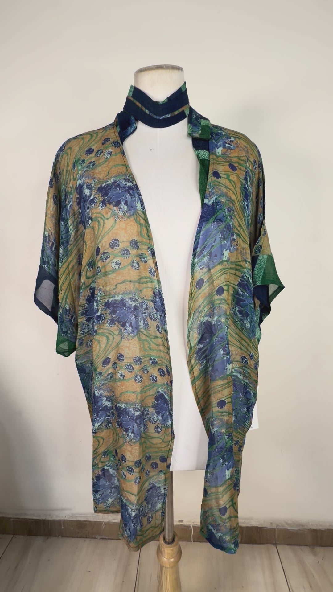PREVIEW PRG8526 Sheer Wabi Sabi Pure Silk Kimono-Sleeved Jacket with Belt