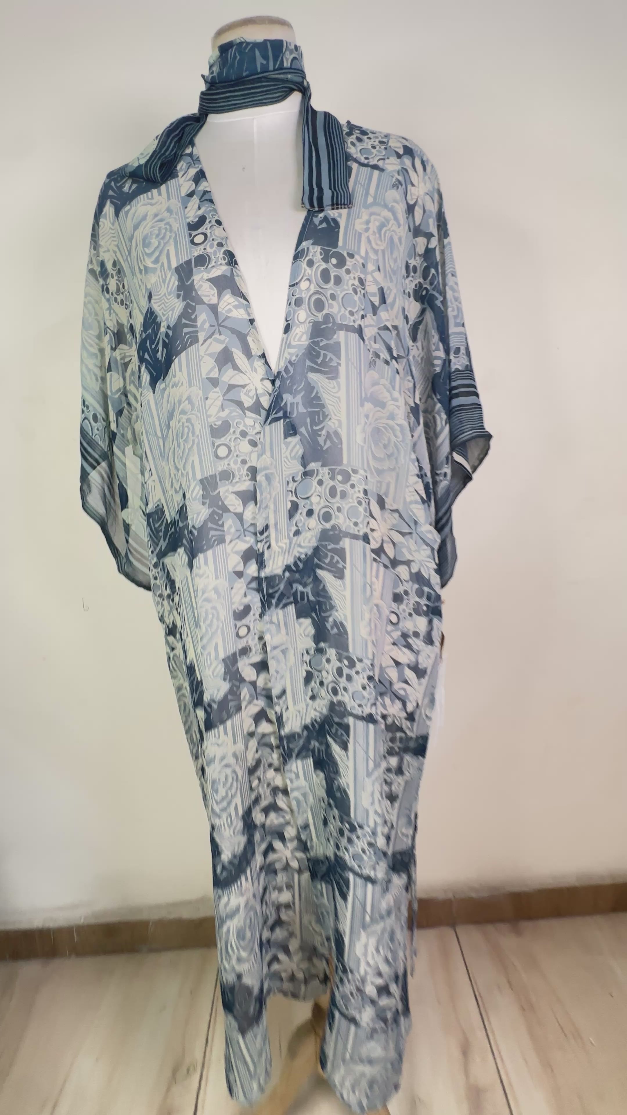 This ethereal, long, open-front duster with detachable belt offers endless styling options. Layer it over jeans, dresses, or swimwear; try it forwards or backwards, as a dress or as a jacket. The sleeves end at the elbow for a cropped wrap jacket look when tied in the front. It's the perfect piece of slow fashion for women 5'4'' and taller; if your frame is shorter, simply add knots to the hem for a personalized fit. Its versatile design also allows you to wear the duster forwards or backwards, or even upside down!
