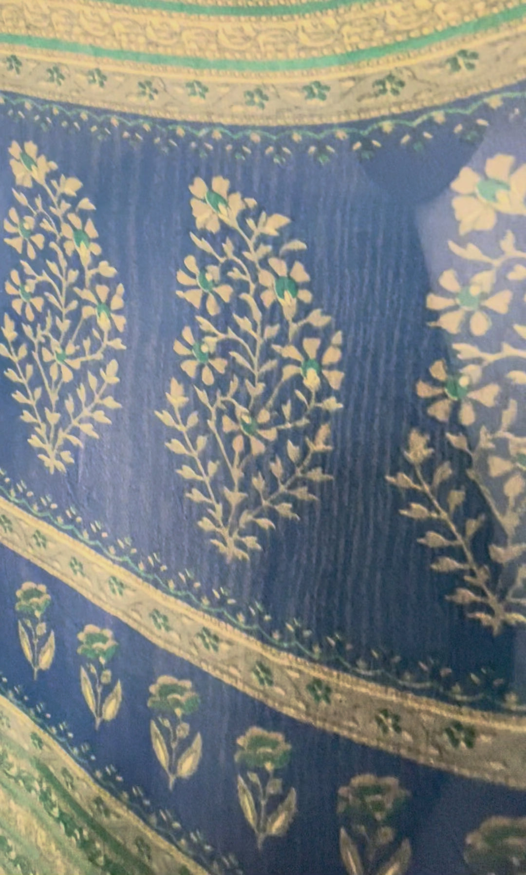 Sometimes you can see the sari-maker’s brand stamp on a piece of silk that we have transformed into another type of garment. We think the brand stamps are charming and that they don’t detract from our products, but because we also sell our clothing to boutiques around the world, we pull these “branded” products and add them to our wabi sabi or “perfectly imperfect” collection. Generally, if the piece you are interested in has a brand tag, you will be able to see its exact location in the product video.