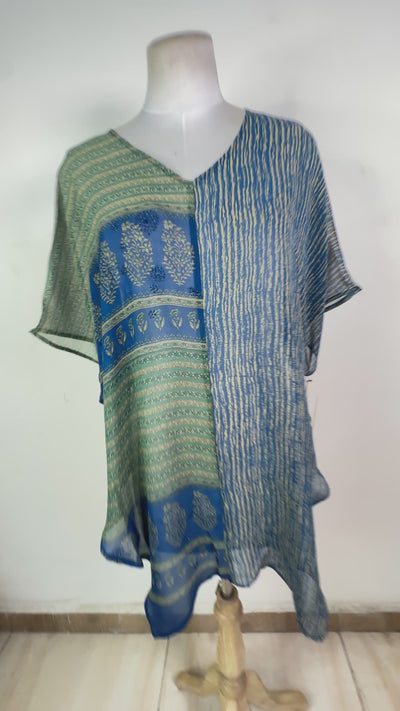 In order to extend the life of our gorgeous silks, we use small patches to camouflage the unavoidable fabric issues that arise from using upcycled fabrics. Most of our regularly-priced pieces will have some patching, but if there is more patching than we think is reasonable or if the patching is combined with another fabric issue, we will add the piece to our wabi sabi collection. Patching can be mild, moderate or significant. Please see the images and video attached to the wabi sabi piece that interests you for patches on that particular piece.