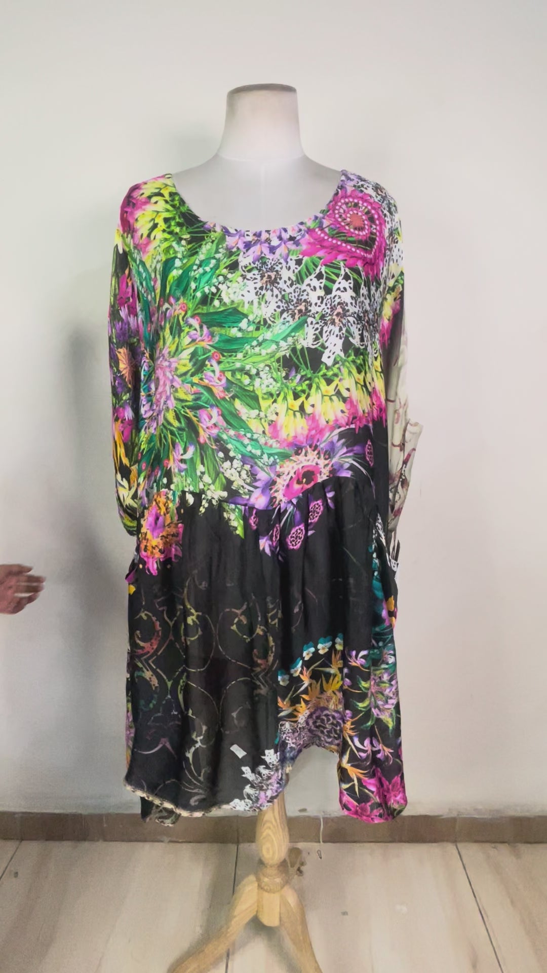 The Pure Silk Boxy Babydoll Dress features a spectacular drape, with a high-low hemline that comfortably fits sizes 2-3X. What's more, this piece offers the added benefit of having pockets! This dress looks great matched with leggings, palazzo pants, or a bathing suit, and is an excellent choice for those looking to make a sustainable fashion statement.