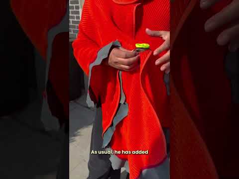 Buttons are handmade by the designer from Fimo, and the leather buttonholes are cut from scraps in his workshop, reflecting Pépin’s resourceful approach to materials.