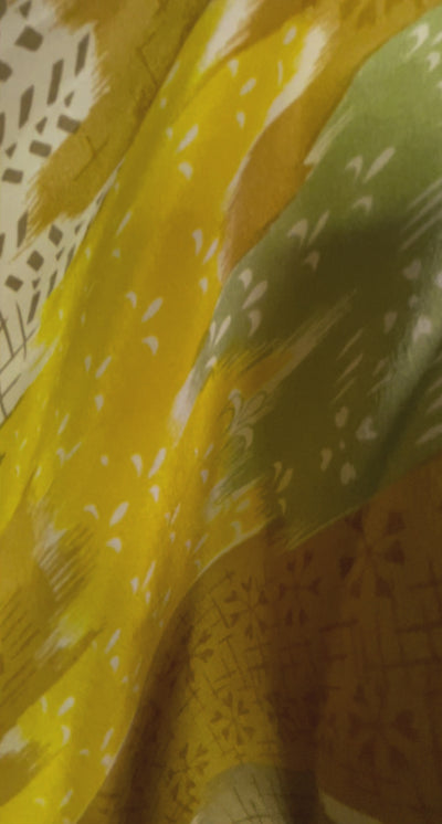 In Eastern philosophy, an Avatar is an incarnation that teaches how to evolve virtues of the past into the present. The Pure Upcycled Silk Avatar Collection is made from vintage pure silk saris, chosen and worn by women in the past to celebrate their lives.If you look very closely, you will see that the silks in this collection show some of the character of their previous incarnations through the appliqués that have been lovingly applied to bring new life to the fabric. This piece is a reminder that we are part of a collective journey to which we all add a little something.