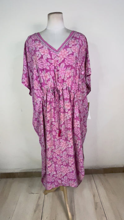 It's finally ready! We workshopped this style with our customers for months to create the perfect maxi kaftan style! It's long, it's generously-cut and it gently skims your body with the feather-light softness of silk. The drawstring at the front allows you to add definition, if you want it. We picture this kaftan at the beach, at a resort, or lounging with you at the cottage.