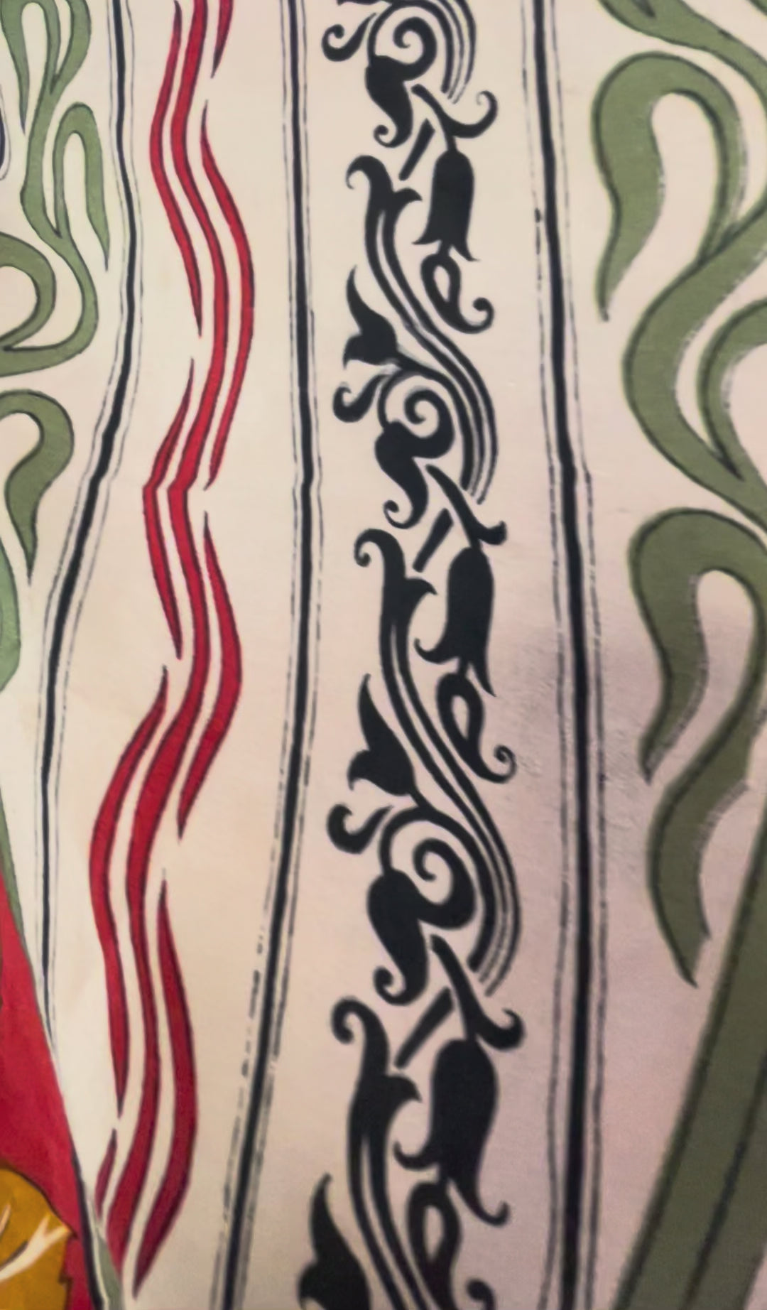 Sometimes you can see the sari-maker’s brand stamp on a piece of silk that we have transformed into another type of garment. We think the brand stamps are charming and that they don’t detract from our products, but because we also sell our clothing to boutiques around the world, we pull these “branded” products and add them to our wabi sabi or “perfectly imperfect” collection. Generally, if the piece you are interested in has a brand tag, you will be able to see its exact location in the product video.