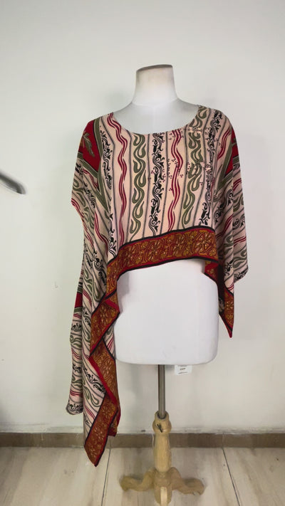 Our vests come in a variety of patterns and textiles, making them a must-have for slow fashion fans. Not only can they be worn as a vest, but also as a scarf, jacket or top. This style is great for all body types. To discover the many ways you can wear your vest, check the Video tab below. One size that fits all, but the Product Measurements tab provides measurements that can help you be sure it's the perfect fit.